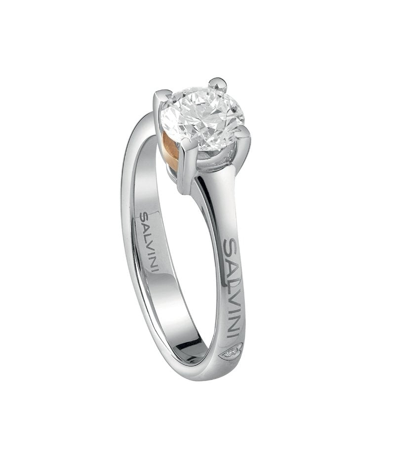 SalviniBattito anello solitario in oro bianco e oro rosa con diamante.