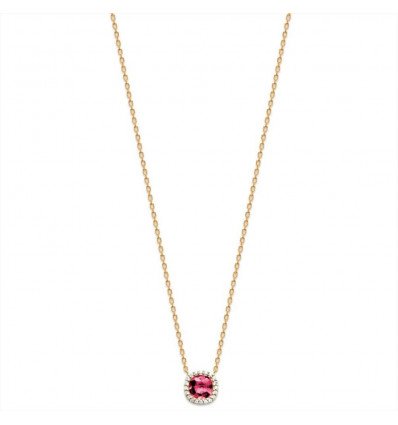 Collana Stroili Golden Dream, in ottone placcato oro giallo, e pendente con pietra sintetica rossa e zirconi. Lunghezza 45 cm.