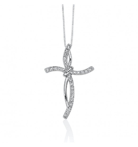 Collana MilunaCroce con 5 dia 0.2G SIoro bianco 18kt45cm